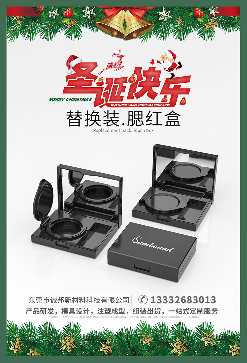 在此,東莞誠(chéng)邦新材料科技有限公司祝大家度過一個(gè)美好的圣誕節(jié)。我們誠(chéng)邦開模注塑幾千款彩妝包材:如口紅管、眼影盤、睫毛膏管、唇彩管等各式各樣的包裝,服務(wù)國(guó)內(nèi)外各大品牌客戶,產(chǎn)品遠(yuǎn)銷歐美、東南亞等地區(qū),包材得到大家的一致喜愛和認(rèn)同。