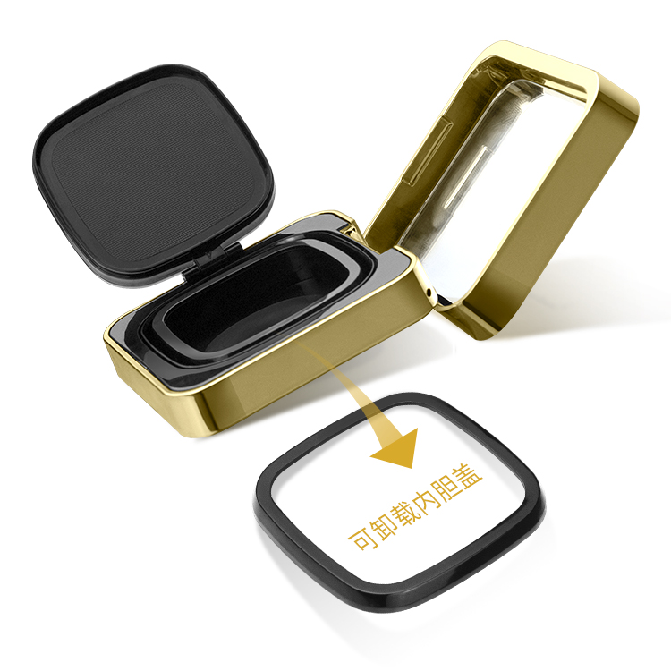 氣墊粉盒是由上蓋、粉蓋、粉片、粉底座組成的盒體,粉蓋和粉底座之間還設(shè)有中框、底座和粉上蓋,底座和中框都是可以拆卸的,方便客戶換上替換裝,也方便清洗。