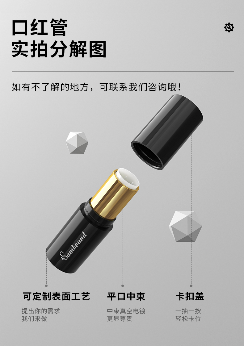 4 8ml黑色圓形口紅管空管包裝定制,這款口紅管采用卡扣開關(guān),鋁中束,可以定制logo和顏色