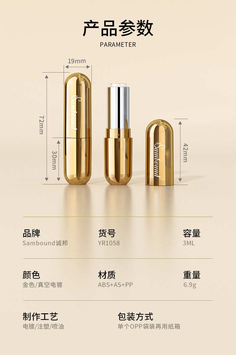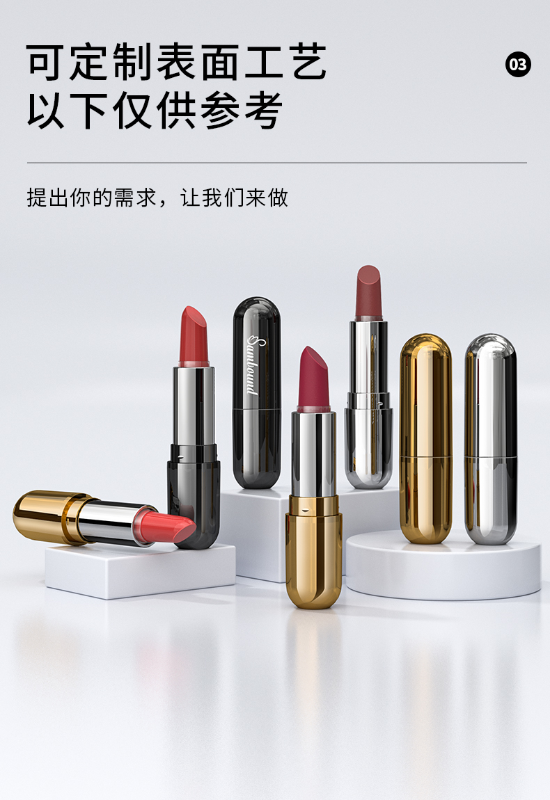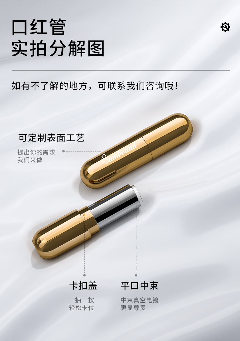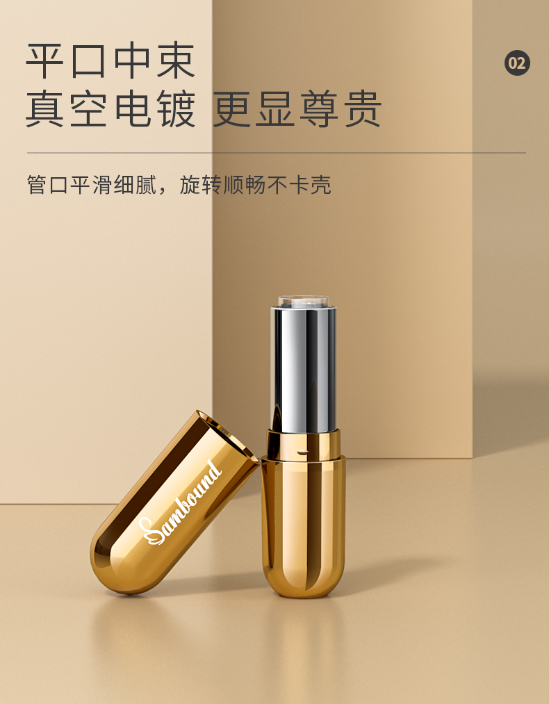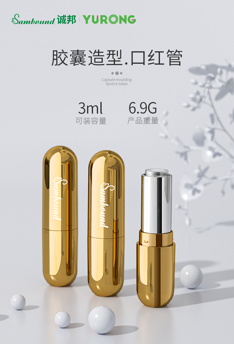 廠家定制金色膠囊形3ml口紅管化妝品包材空管,可以定制logo、顏色。