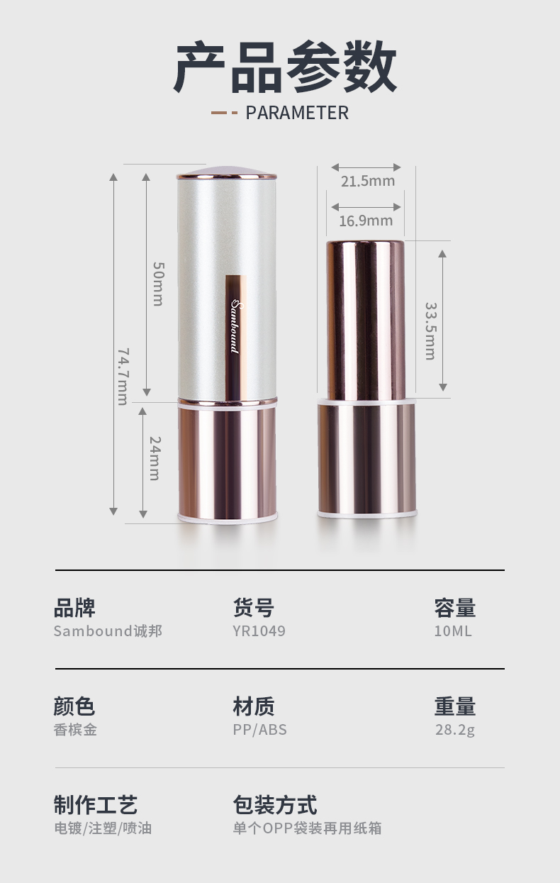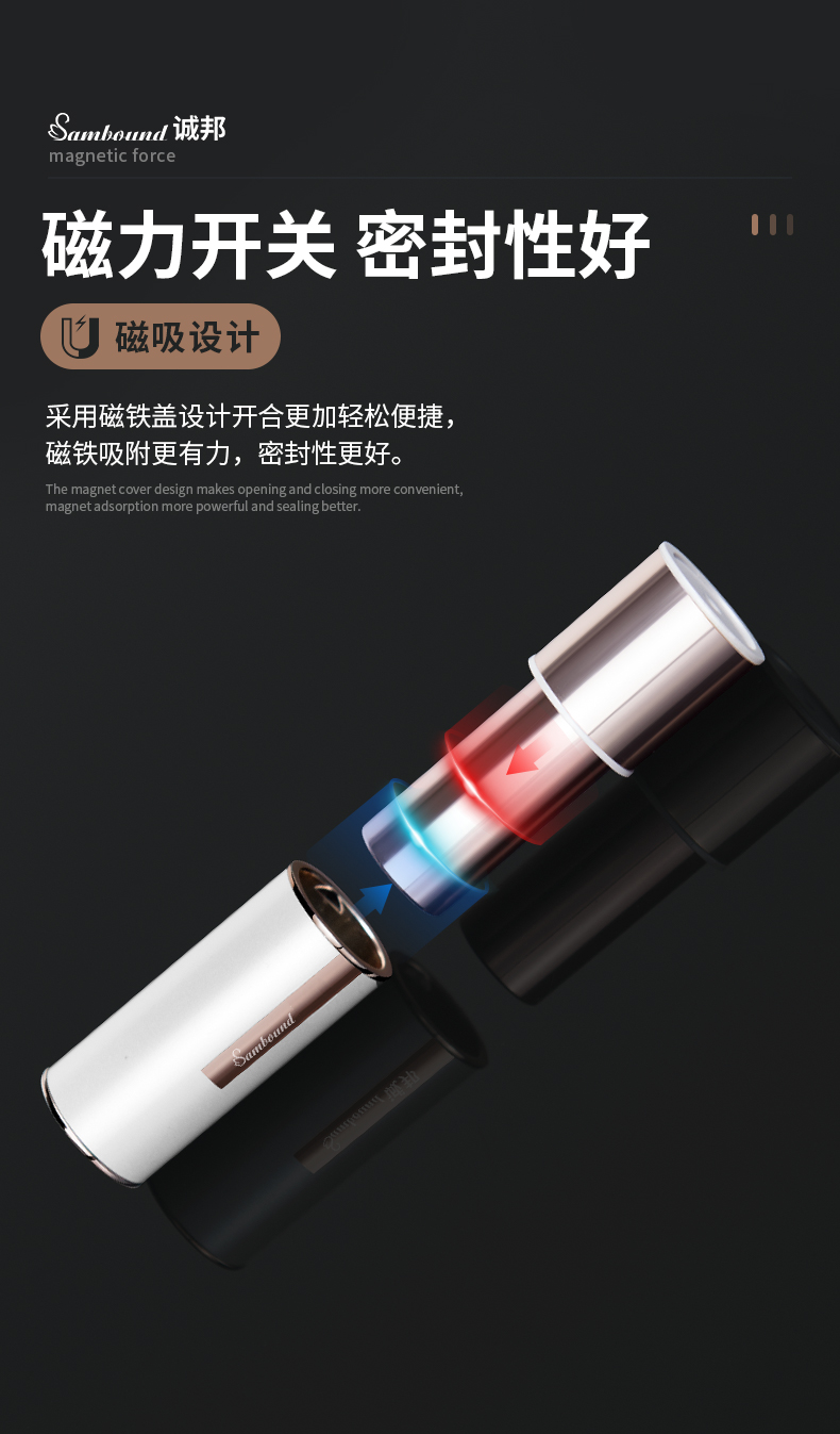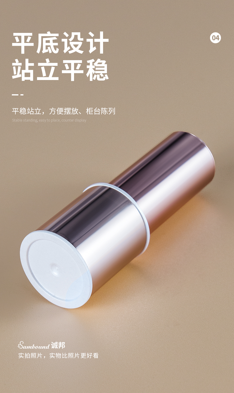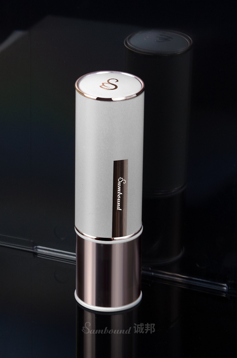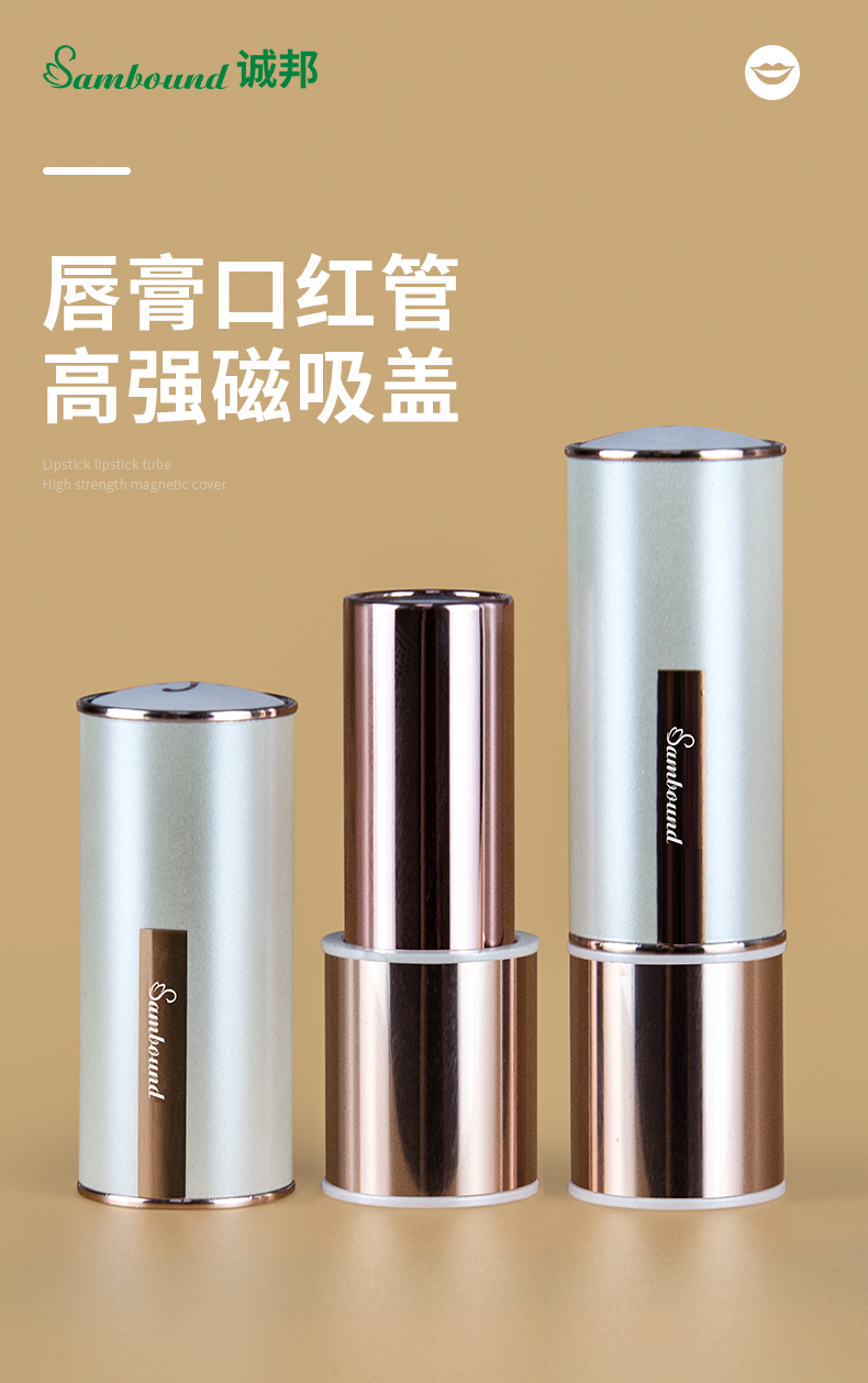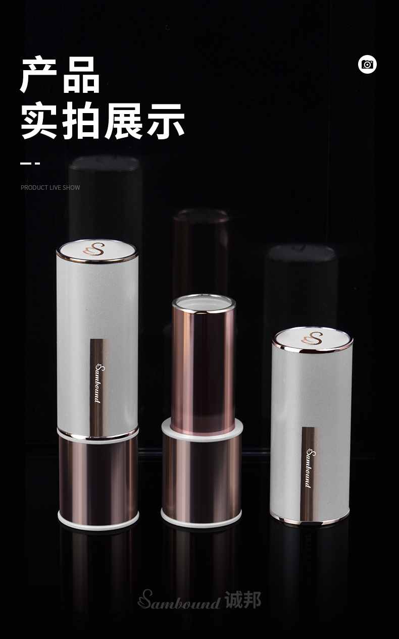 全鋁材質(zhì)口紅管,表面噴砂珠光白,磁吸款加墜重,增加厚重手感,口紅管包材廠家,可接受來圖來樣定制