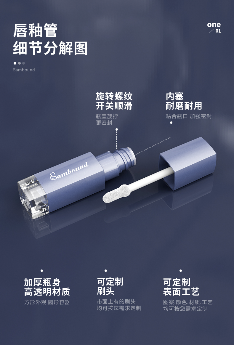 方形迷你唇釉管空管4ml唇彩管特點:旋轉(zhuǎn)螺紋開關(guān),順滑耐磨耐用,采用PETG瓶身,ABS瓶蓋。誠邦化妝品廠家可定制logo和顏色