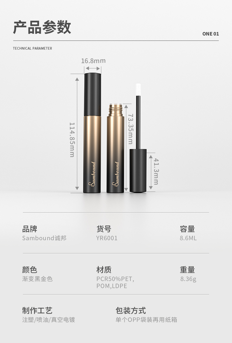 PCR環(huán)保材質(zhì),啞光漸變8 6ml空唇彩管定制廠家,誠邦是一家從開模到注塑加工的工廠,可以定制顏色、logo和工藝。