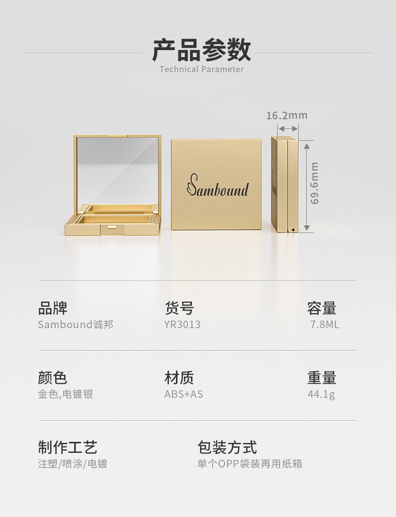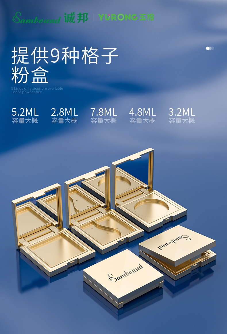 誠(chéng)邦OEM定制方形塑料空粉盒金色電鍍化妝品包裝盒,我們可以為您定制顏色、logo,且供應(yīng)9種內(nèi)格選擇